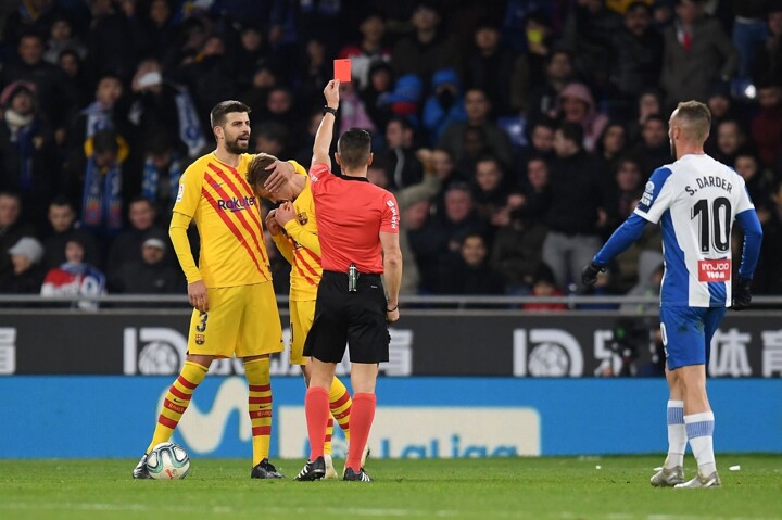 It's the fourth time a Barcelona player's been sent off this season. Clement Lenglet received his marching orders against Getafe and Ronald Araujo and Ousmane Dembele both saw red against Sevilla.