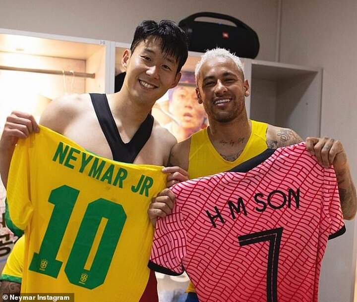Brazilian superstar Neymar posted a photo of him and Tottenham Hotspur forward Heung-min Son on his Instagram story.