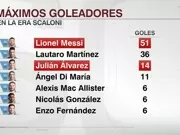 Argentina's top scorers under Scaloni: Messi leads with 51 goals, Alvarez third