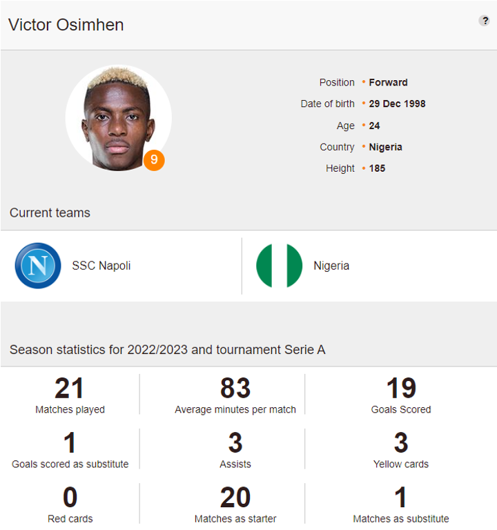 Osimhen is currently heads and shoulders above every striker in Serie A this season, having scored 19 goals in 21 games. The Nigeria international has another two in four Champions League matches.
