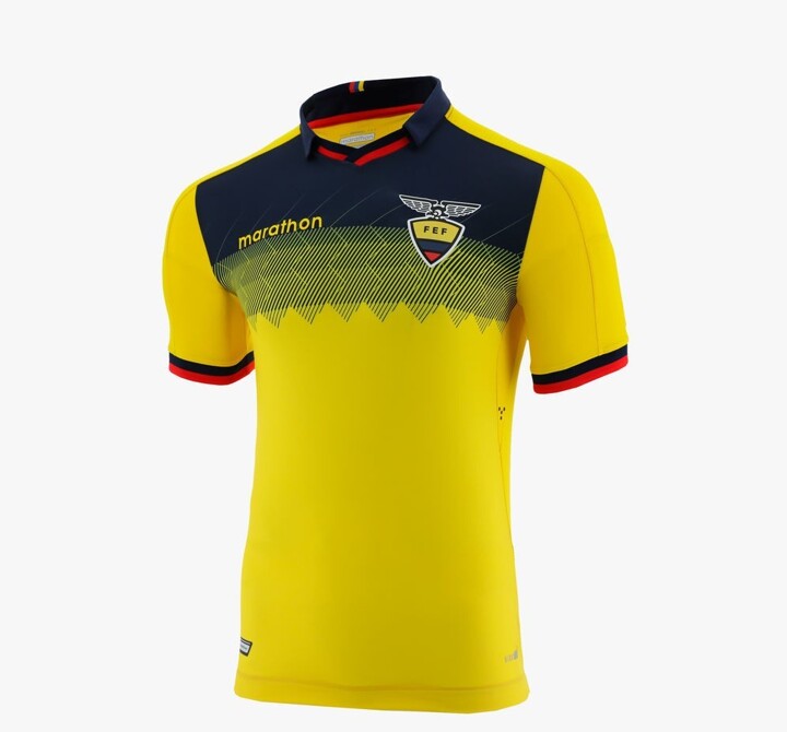 The new Ecuador home jersey introduces a unique design that combines the typical yellow base with a darker-than-usual shade of blue in the form of a bespoke graphic print on the top part of the front.