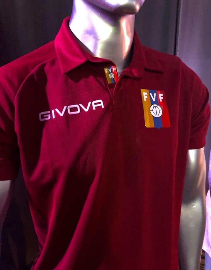 The Givova Venezuela 2019 home jersey is predominantly dark red, while being based on the same template as the away shirt. It also features all the same personalization details found on the away, on the inside neck and on the upper back.