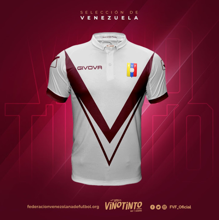 The Venezuela 2019 away kit combines the main color white with the team's trademark wine red color. It has a unique V-design on the front, inspired by the team's nickname 'La Vinotinto'.