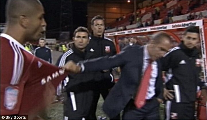But just a month into his stint at Swindon Town an argument after a League Cup clash with Southampton with Leon Clarke was caught on camera.