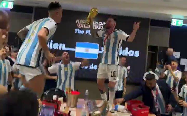 Footage from inside the Argentina dressing room, filmed by current and former players, shows how the World Cup winners swigged champagne, drenched manager Lionel Scaloni and compared forward Papu Gomez to David Beckham in the aftermath of their thrilling win over France.