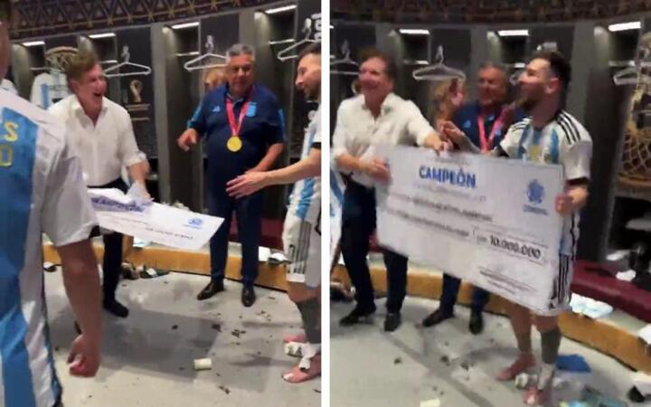 Argentina's players and staff danced on tables, leapt into bins, cavorted with a $10 million dollar cheque and held a “moment of silence” for Kylian Mbappe in their wild celebrations after Sunday's World Cup final victory.