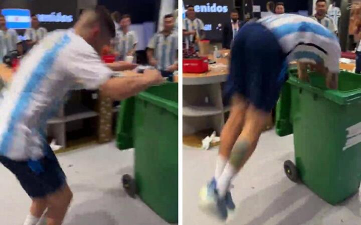 Aguero's footage shows Lionel Messi, the Argentina captain, dancing on a table with the World Cup trophy held aloft. It also shows a member of staff somersaulting head-first into a wheelie bin.