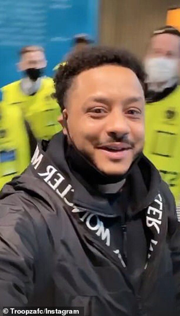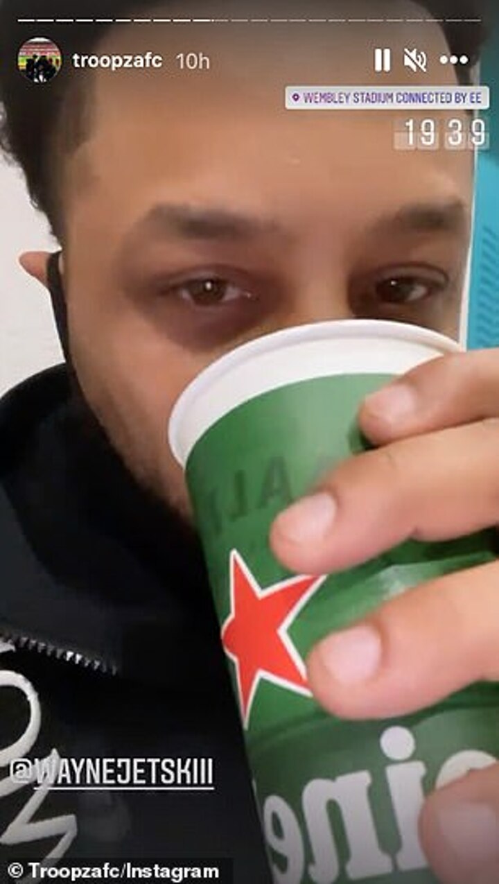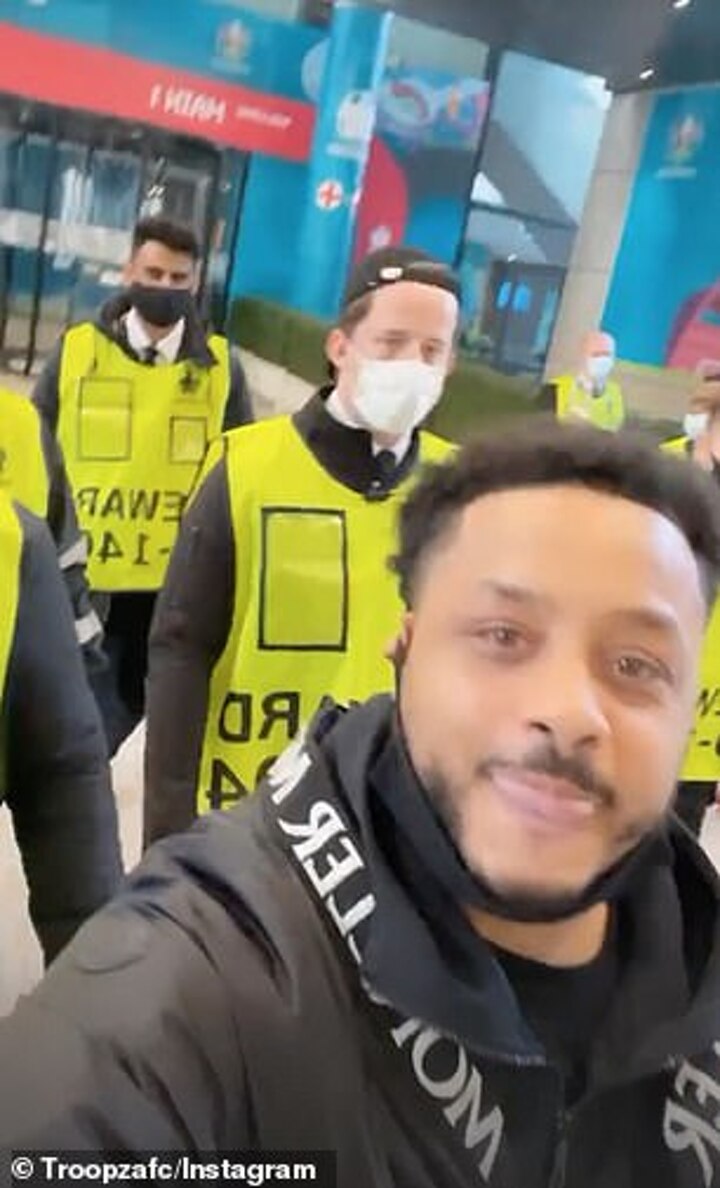 Footage taken from his Instagram account shows Troopz and a cameraman, who goes by the Twitter handle @WayneJetskiii, inside Wembley before the game as they filmed the pre-match scenes and the teams coming out of the tunnel before kick-off.