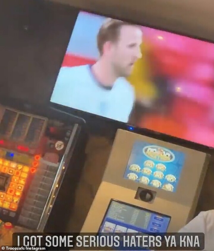 Troopz, who has 308,000 followers on Instagram, then uploaded another clip of him watching the rest of the game, in which England won 1-0 to secure top spot in the group, in a pub in the Wembley Park area.