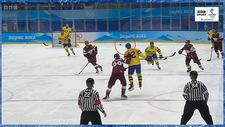 Friberg was the furthest player forward for Sweden with 11.33 minutes remaining of the second period when the puck was launched forwards.