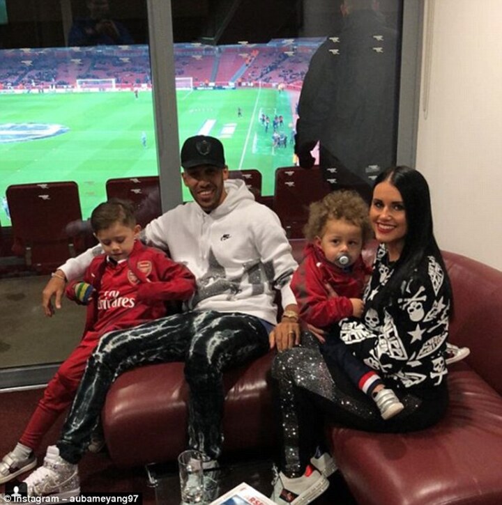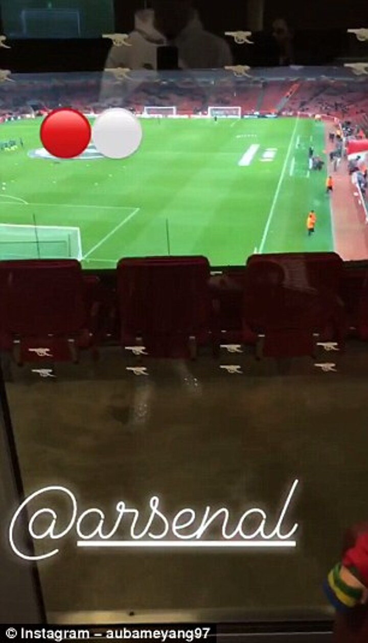 Aubameyang cut a relaxed figure alongside model girlfriend Alysha Behague and their two children as they watched from the warmth of an executive box.