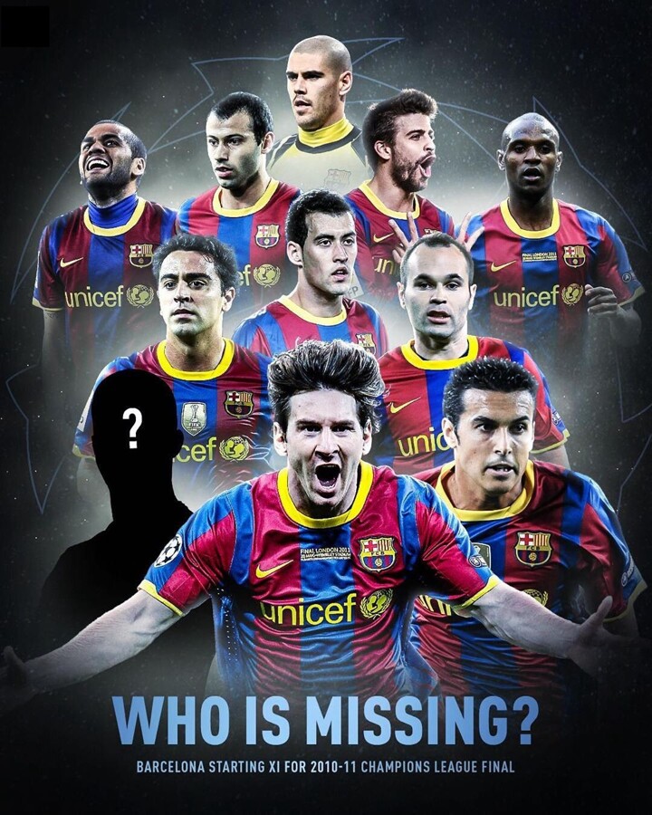 Who is missing in Barca's starting XI for 2011/12 Champions League Final?