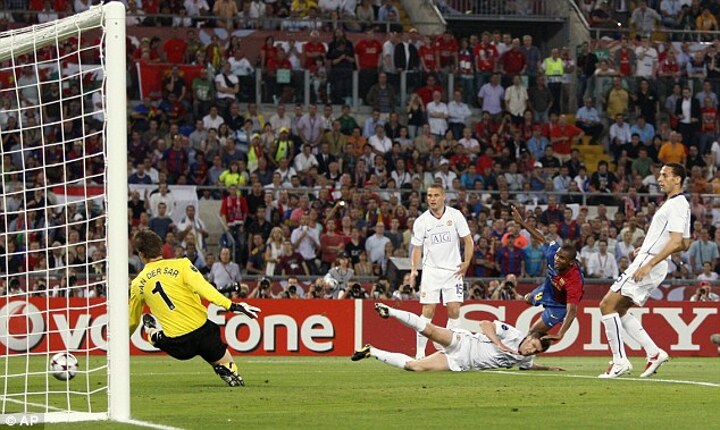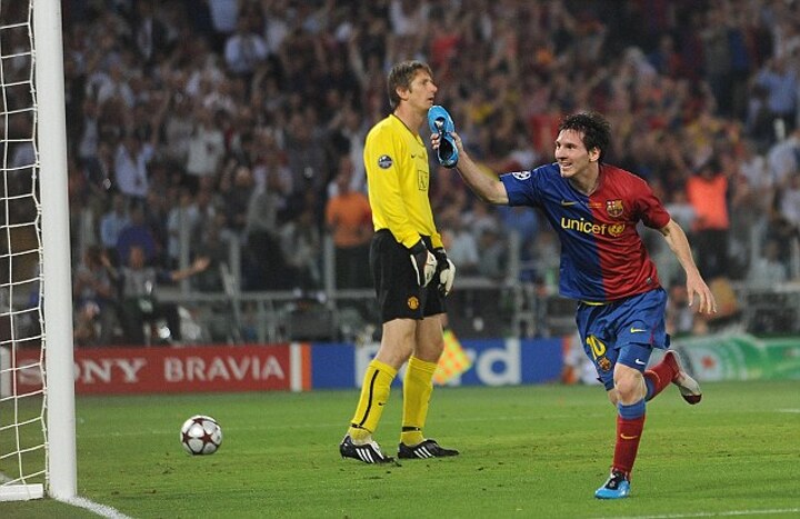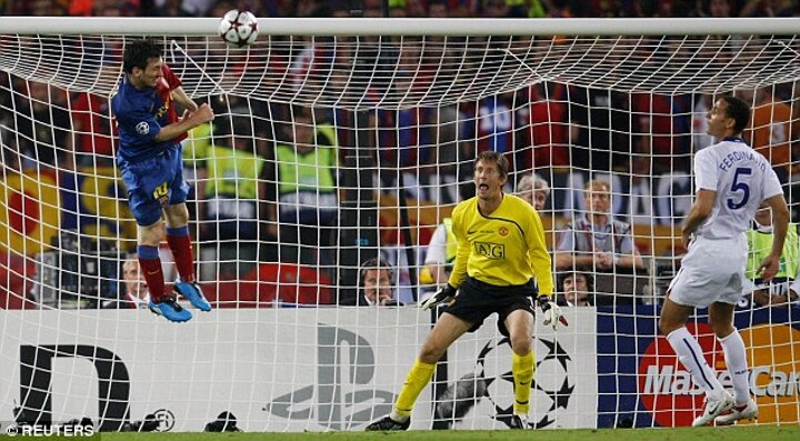 Messi's magic moment in Rome was brilliantly captured in that iconic image of him twisting back to get his head to the cross as Rio Ferdinand and an aghast Van der Saar look on.