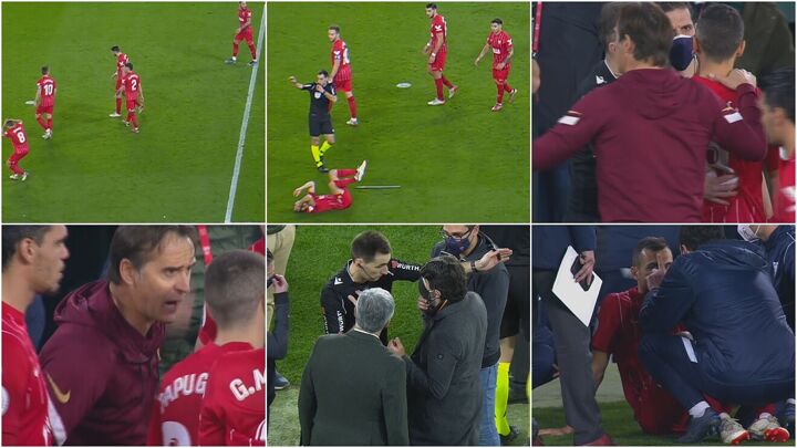 The Sevilla midfielder was able to get back to his feet after receiving medical attention, whilst Julen Lopetegui and his assistants were furious at the incident.