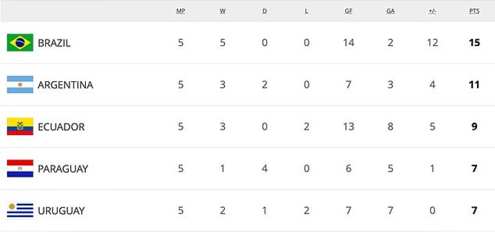 The result means Brazil are top of the 10-team South America group, with 15 points from five games, four ahead of second-placed Argentina. Ecuador are third with nine.