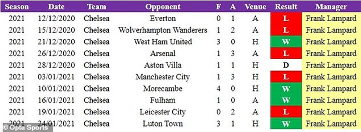 However, a look at the last 10 games under Lampard - which saw four wins, five defeats and one draw - demonstrates the way in which they have improved defensively.