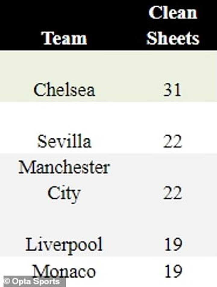 Thirteen European sides have scored more goals in that period - including both Liverpool and Man City with 89 and 111 respectively - but it is at the other end of the field where Chelsea truly dominate.
