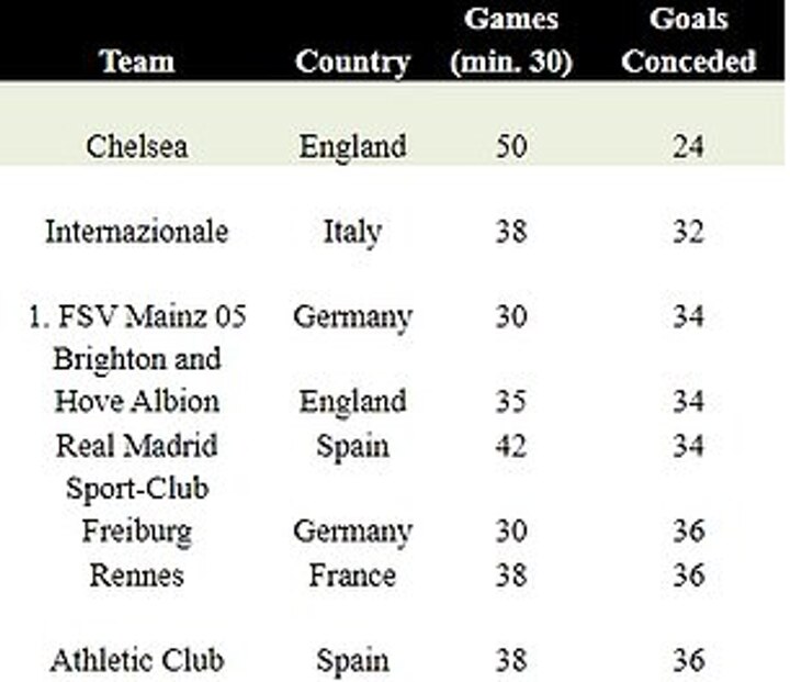 Liverpool sit in fourth, though Alisson and Co have managed 12 fewer clean sheets than their Chelsea counterparts. Meanwhile, Inter Milan have the next best record for goals conceded from top-flight sides who have played at least 30 matches in this period.