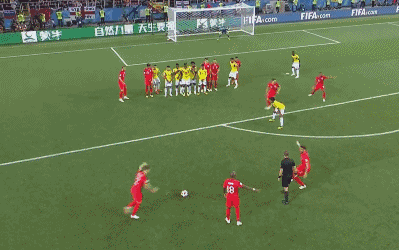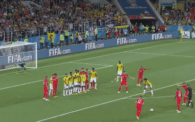 SHOT! Trippier curls the free kick over the wall but it curls just wide of the left post. Not a bad effort but it was nothing to concern Ospina in the Colombia goal.