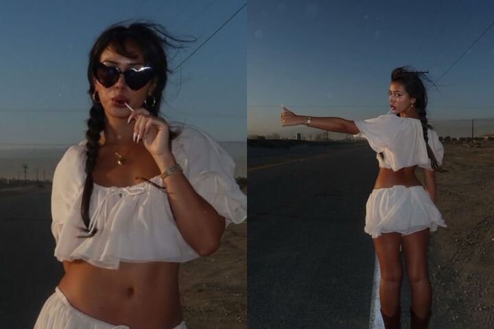 While posing by the side of the road, the model even revealed one of her breasts, which she covered with a star emoji. Fans went wild, with the post garnering nearly 150,000 likes in just two hours.