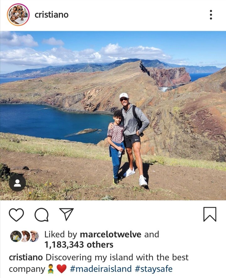 The Juventus star was exploring one of the beautiful islands with Cristiano Jr and posed for an Instagram photo, with his partner Georgina Rodriguez apparently behind the camera.