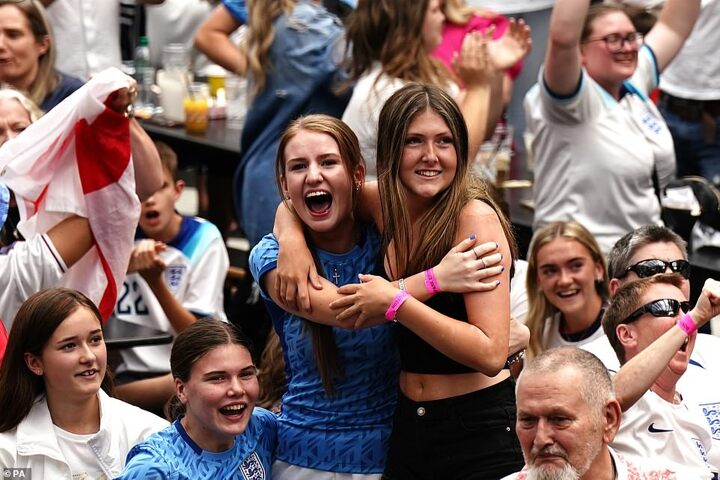 The Lionesses held a 1-0 lead at half-time, while millions of England fans watched on TV back home - with some taking a few hours off work to go to a pub or having it on the background while 'working from home'.