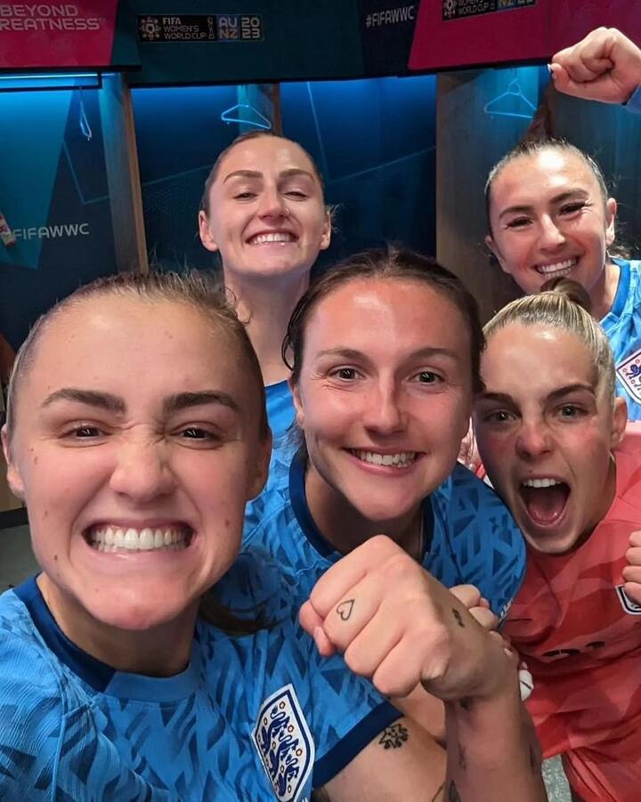 Midfielder Laura Coombs shared a video of teammate Niamh Charles performing a celebratory dressing room boogie after the incredible win. She also posted a picture, posing with her proud family in the stands after the Lionesses' victory against the Matildas.