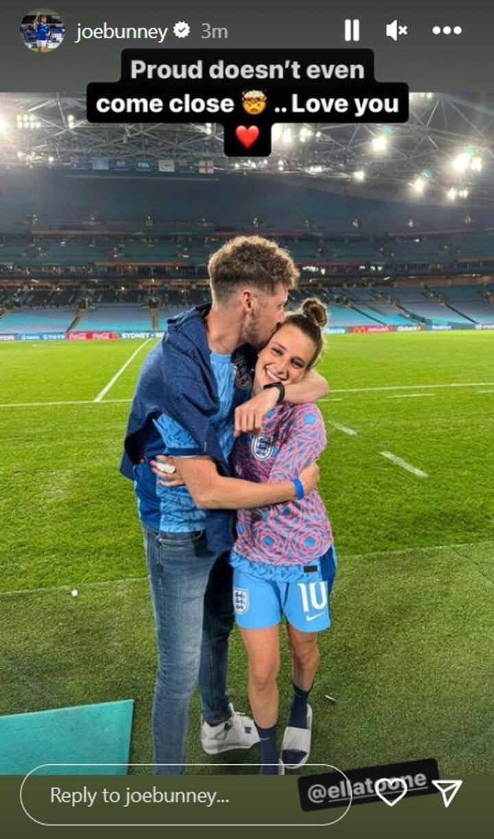The footballers and their families posted celebratory snaps on Instagram, including Stalybridge Celtic player Joe Bunney, the boyfriend of Lioness Ella Toone, who scored the stunning 36 minute opening goal for England.