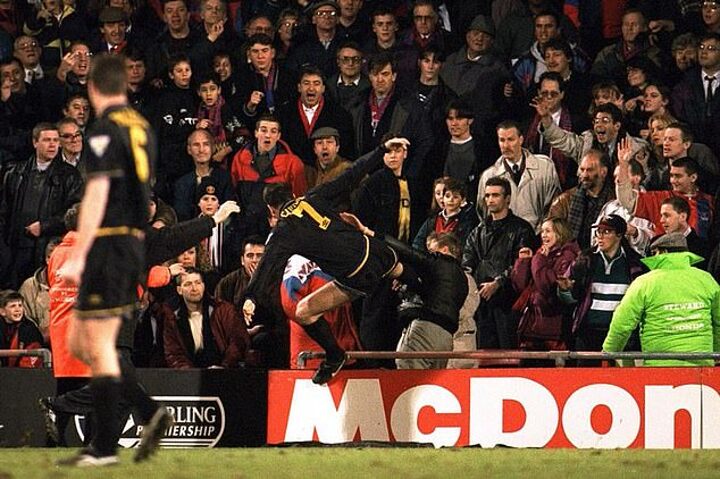 But Cantona didn't leave Old Trafford despite serving a nine month ban and handing in a transfer request that summer, with manager Alex Ferguson persuading him to stay.