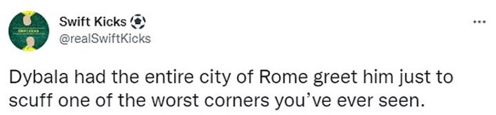 One fan said: 'Dybala had the entire city of Rome greet him just to scuff one of the worst corners you've ever seen.'