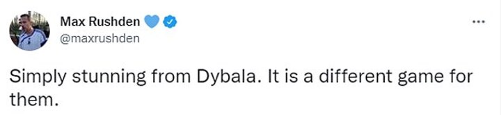 A second fan wrote: 'Simply stunning from Dybala. It is a different game for them.