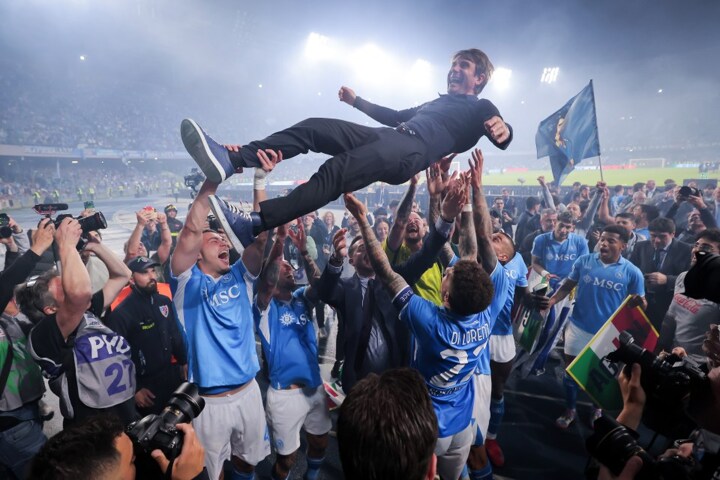 At the final whistle, Napoli players threw Conte into the air as he and club president Aurelio De Laurentiis then shared an emotional hug and were close to tears.