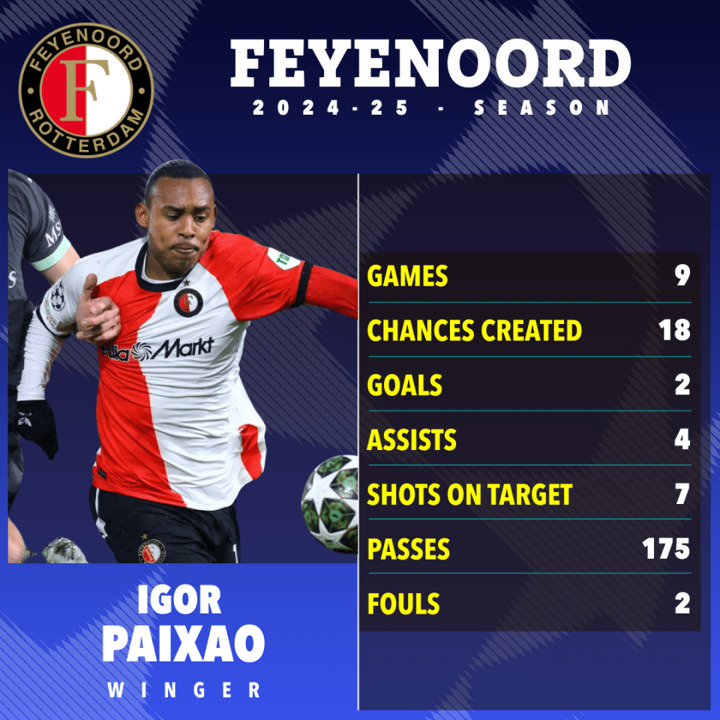 Paixao also registered an assist in Feyenoord's 3-3 comeback draw with Manchester City earlier this season.