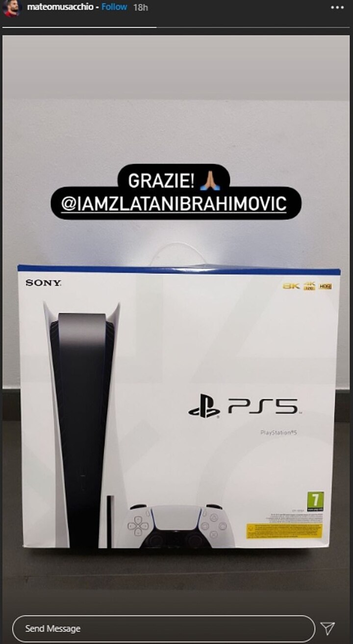 Mateo Musacchio did the same, minus the super car, tagging Ibrahimovic and thanking him with a picture of the PS5 in his home.