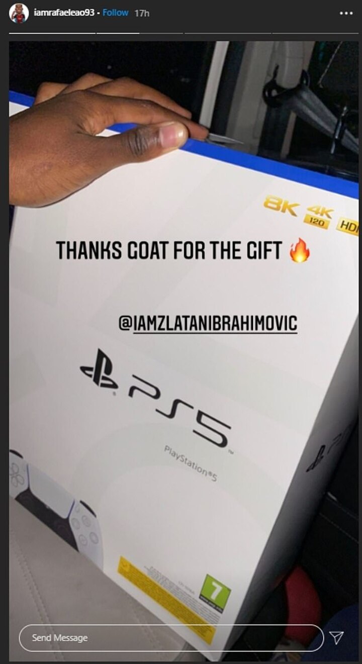 Portuguese forward Rafael Leao shared a photo on Instagram of the PS5 box and tagged Ibrahimovic, thanking him and calling him the 'GOAT'.