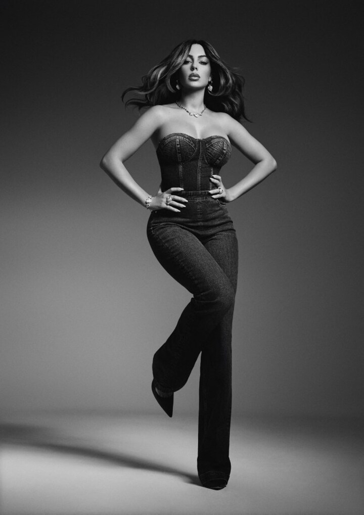 In her latest shoot, she was photographed by Nima Benati for GUESS' Holiday 2024 campaign.