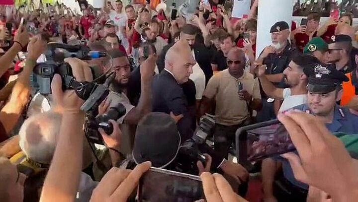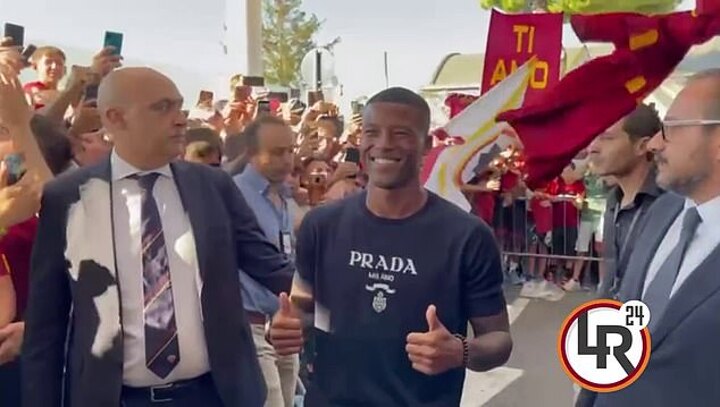 In videos on social media, the Dutch international was spotted after he arrived on a private jet provided by club owners the Friedkins - before hearing his name chanted by the waiting fans.