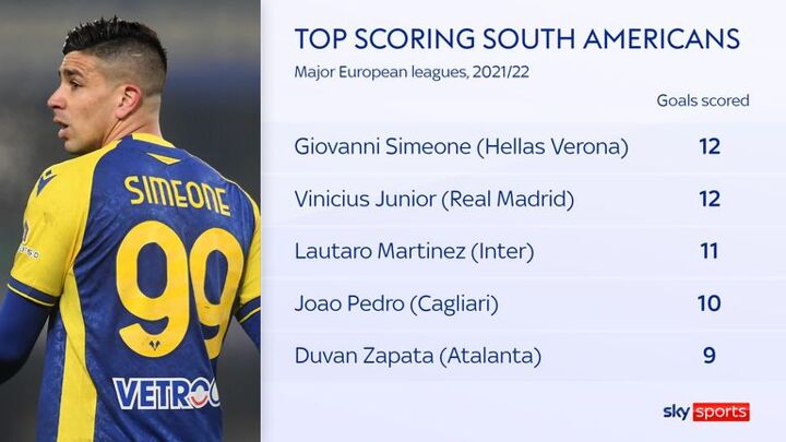 It has been a transformation for Simeone, now 26, who was allowed to leave Cagliari on loan in August. He is now the top-scoring South American player in any of Europe's big leagues, rekindling his ambition of going to the World Cup later this year.