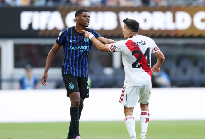 Tensions then boiled over at the end when River star Acuna, further enraged by the referee's decision to send off team-mate Gonzalo Montiel, squared up with Inter defender Dumfries.