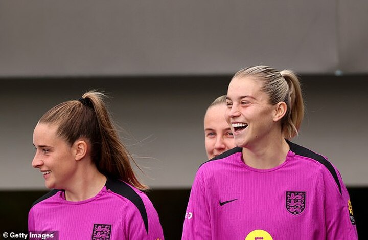 An iconic Manchester United song on women's football's favourite best pals and England superstars: 'I like it, I like it, I like it, ooooh, here we go. It's Tooney and Lessi Russo'.
