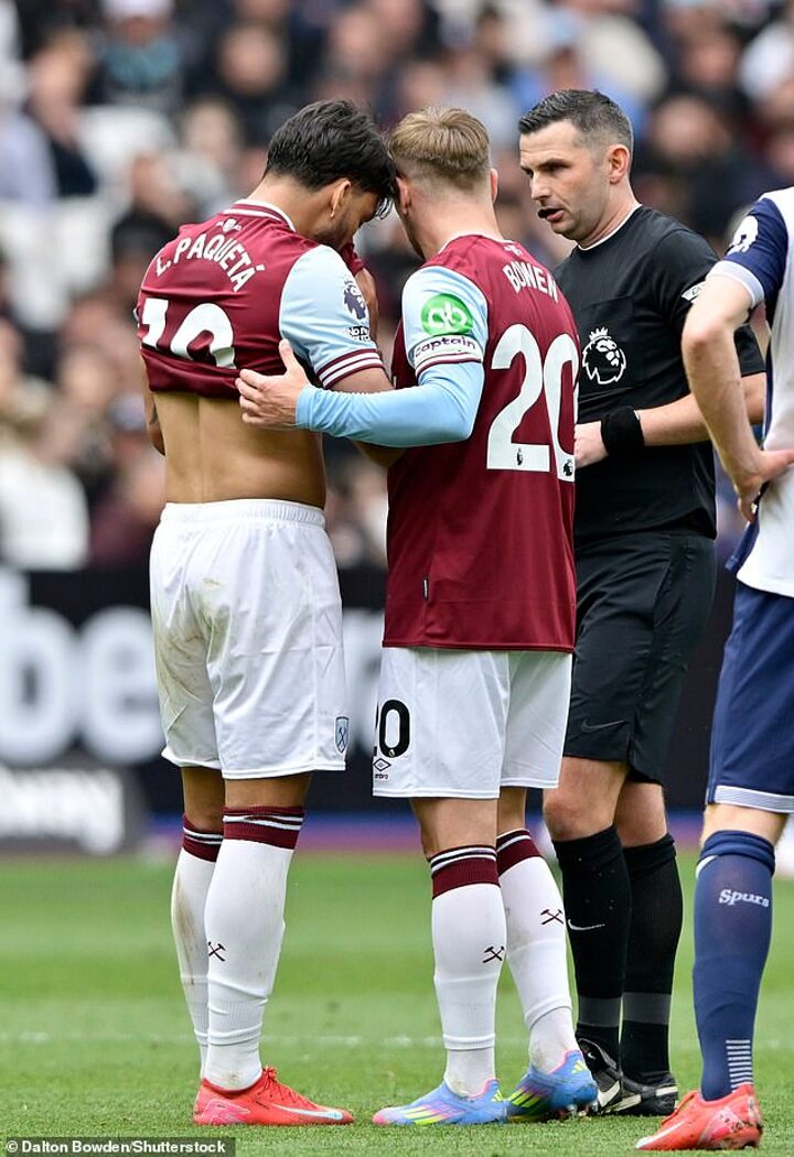 Only later on, in the 73rd minute, Paqueta tripped Tottenham’s Mikey Moore, referee Michael Oliver booked him and Paqueta burst into tears. Oliver went over to him as West Ham captain Jarrod Bowen consoled his team-mate before Potter substituted him seven minutes later.