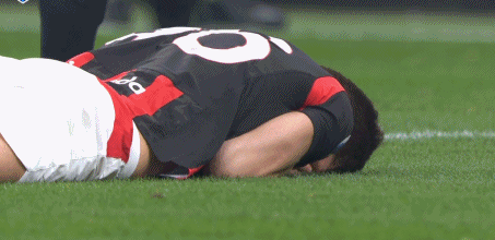7' Gabbia looks in a bit of trouble as he comes crashing down with some blood