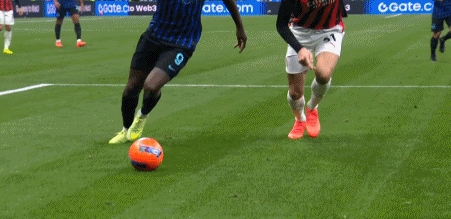47' Leao is the first player to pick up a yellow card for a nasty one on Barella