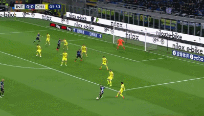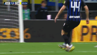 It rebounds off the inside of the near post before rolling into the back of the net. 1-0 Inter!