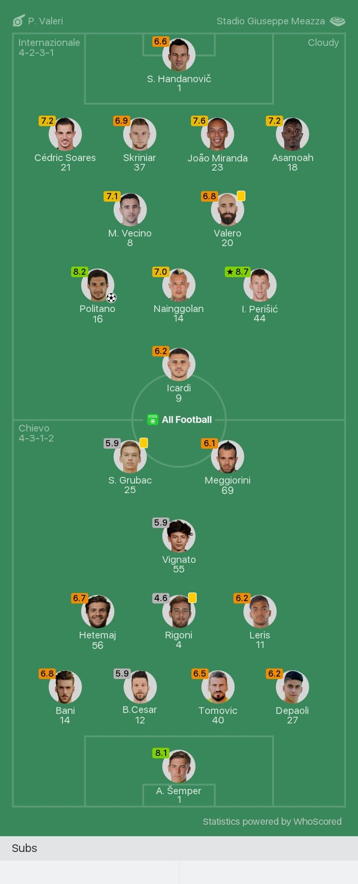 Politano's effort was just reward for a dominant performance from Luciano Spalletti's side, though their fans were frustrated by wasteful finishing from Ivan Perisic and some fine saves from Adrian Semper.
