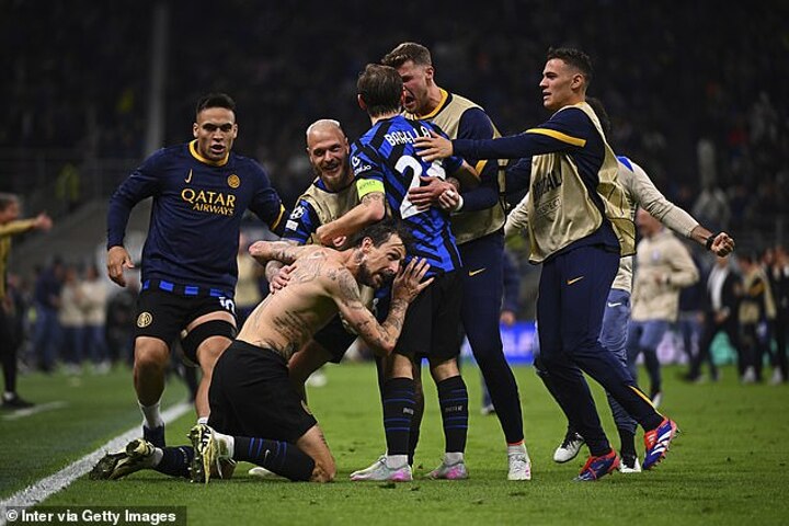 But the mad Champions League tie had another twist in the tail, with veteran centre-back Francesco Acerbi scoring a 93rd minute equaliser to force extra time and allow Inter another half an hour to find a winner through substitute Davide Frattesi.