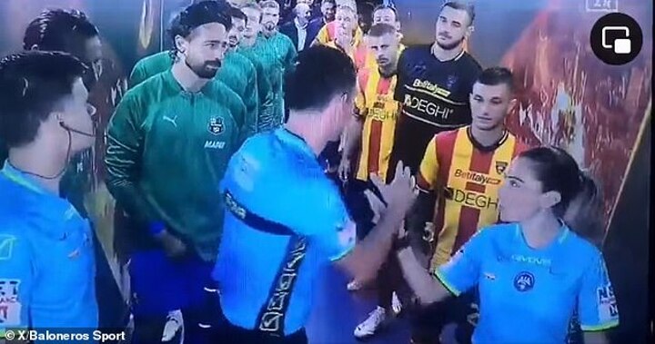 Yet before the game even kicked off there was a contentious moment in the tunnel, when Juan Luca Sacchi failed to observe the traditional pre-match handshakes with his female assistant Francesca Di Monte.