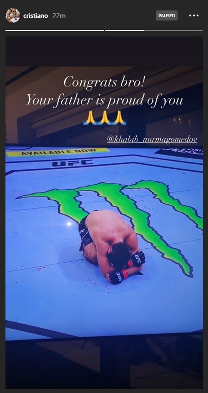 Earlier this year, Ronaldo paid tribute to Khabib after the Russian beat Justin Gaethje in UFC 254 in October, which turned out to be the 32-year-old's final fight of his career.