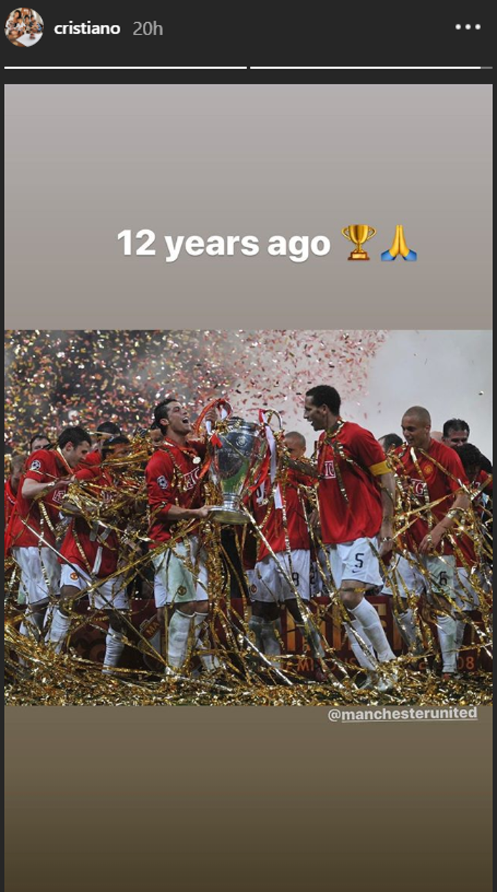 Ronaldo has posted a photo to celebrate Man Utd's UCL win over Chelsea in 2008.