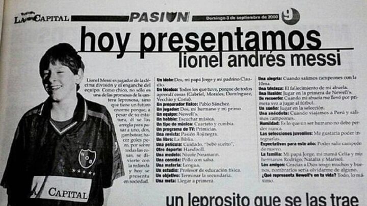 The interview was carried out shortly before a 13-year-old Messi left Argentina for Spain, joining the iconic La Masia youth academy at Barcelona and blossoming into an all-time great.